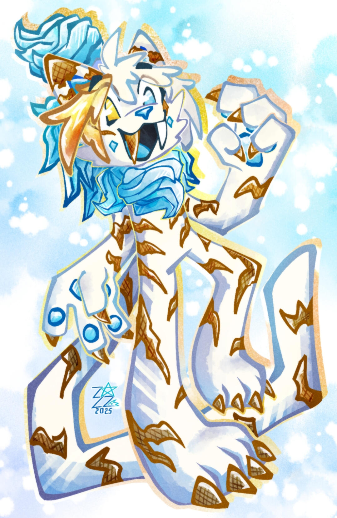 We are planning to bring animated/motion posters (3D prints), keychains, acrylic standees, t shirts, fans, and stickers. We are also planning to have at least one or two partials depending on space, in which mxbird will create the design and zigzagzazz will create the suit (head, paws, and tail).The breakdown of the space will consist of roughly 50% collaborative art, 25% zigzagzazz art and 25% mxbird art (both of us taking our own commissions respectively).Commissions (both on-site and take-home) will be offered.