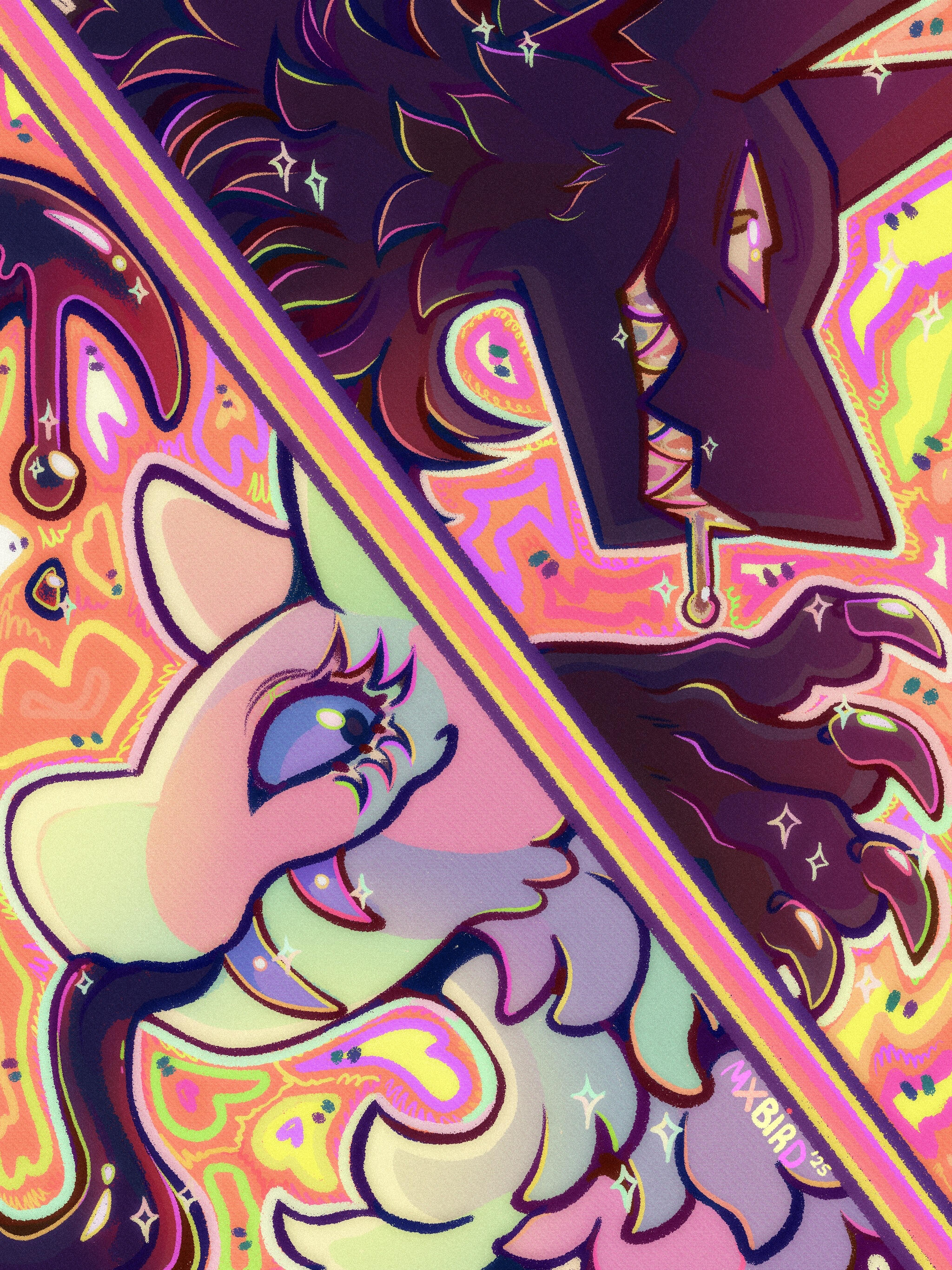A little bit about us!Both queer artists, Zazz is a multi-genre artist and Pidge focuses on illustrations of non-human and anthro characters. Their art is a mix of fanart and original art, with an emphasis on non-human and anthro characters. Pidge was a major catalyst for Zazz joining the furry fandom, and now they are looking to do more events together!